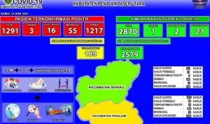 Hari ini terdapat penambahan dua pasien dinyatakan selesai isolasi karena sudah sembuh, sehingga total sembuh menjadi 1.217 orang, sedangkan jumlah mereka yang positif tidak ada penambahan atau masih 1.291 orang.