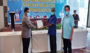 DPA diserahkan langsung olehnya disaksikan sekum PB PON Papua Elly Loupatty pada rapat dan penetapan DPA PB PON XX Tahun 2021 Papua, di Hotel Mercure, Jumat (29/01/2021). DPA diserahkan kepada masing-masing bidang PB PON XX Tahun 2021.