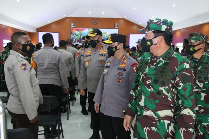 PAPUA – Panglima TNI Marsekal Hadi Tjahjanto dan Kapolri Jenderal Listyo Sigit Prabowo melakukan kunjungan kerja (kunker) ke Papua. Dalam kesempatan itu keduanya memberikan pengarahan kepada personel Babinsa dan Bhabinkamtibmas.