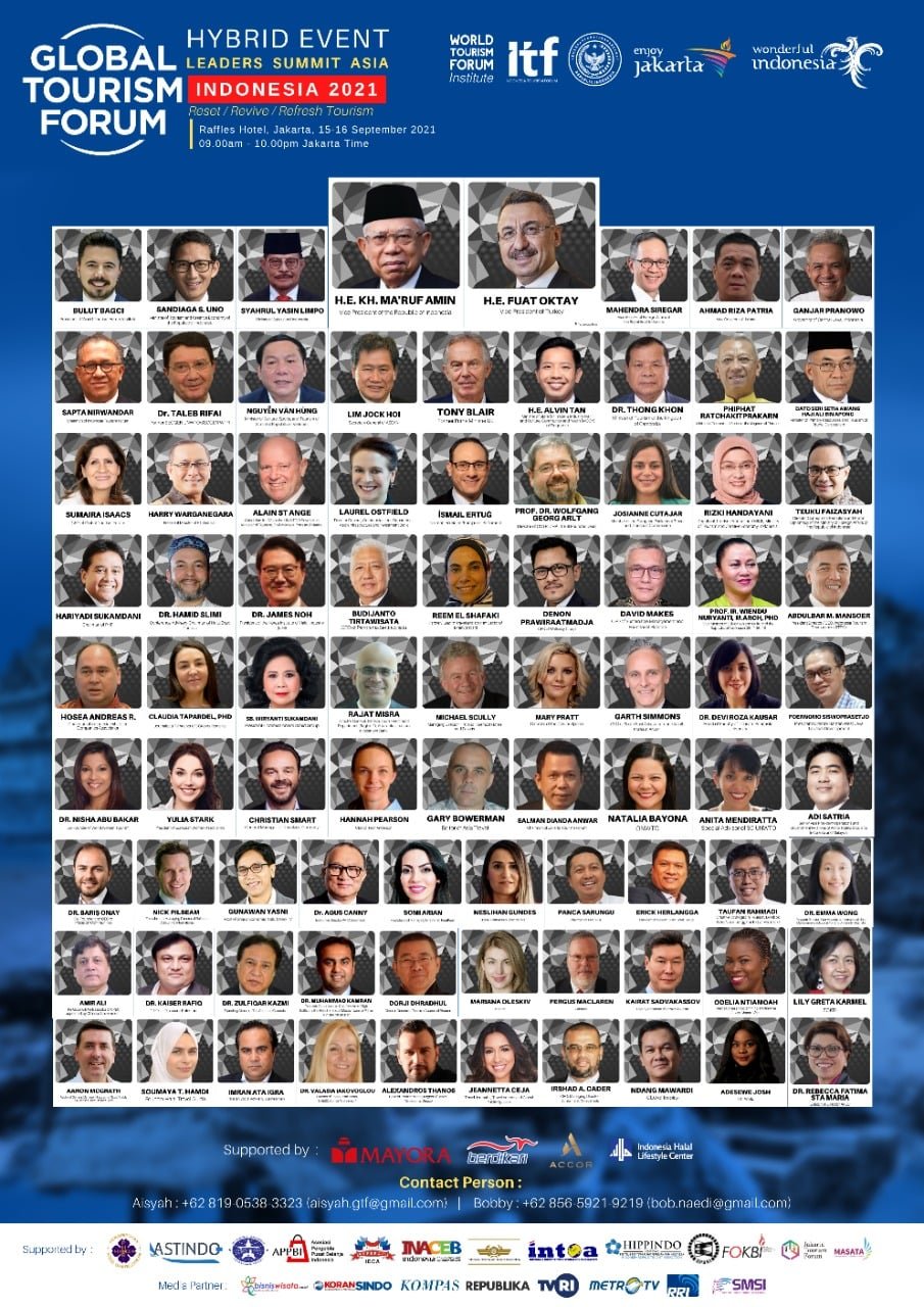 ”Kegiatan secara hybrid ini bertabur pembicara internasional seperti Taleb Rifai, Tony Blair dan lainnya. Global Tourism Forum merupakan brand dari World Tourism Forum Institute (WTFI) dan suatu kolaborasi platform yang difokuskan pada tantangan-tantangan yang dihadapi oleh industri pariwisata dan perjalanan ” jelas Sapta Nirwandar.