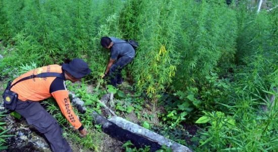 Badan Narkotika Nasional (BNN) memusnahkan ladang ganja dengan luas seluruhnya mencapai dua hektare di Mandailing Natal, Sumatera Utara, Selasa (24/8/2021). Sebanyak 134 personil gabungan dari
