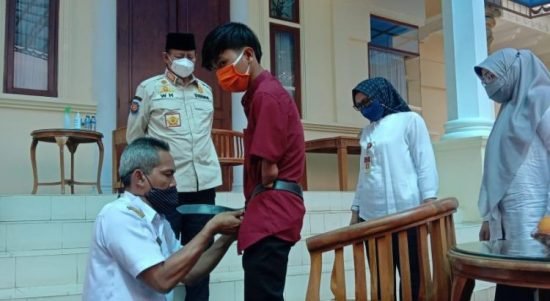Serang – Gubernur Banten Wahidin Halim (WH) secara simbolis menyerahkan Bantuan Kaki Palsu ke penyandang disabilitas di Rumah Dinas Gubernur Banten Jl.