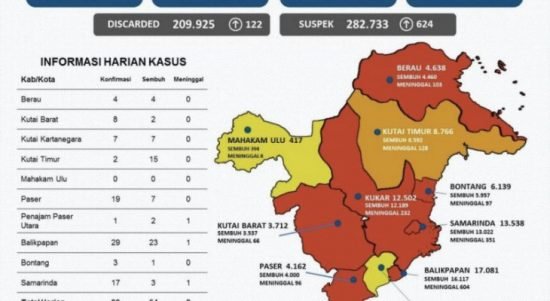 Samarinda – Satgas COVID-19 Provinsi Kalimantan Timur menyampaikan perkembangan kasus pandemi di wilayah setempat terjadi kenaikan terkonfirmasi positif sebanyak 90 orang pada